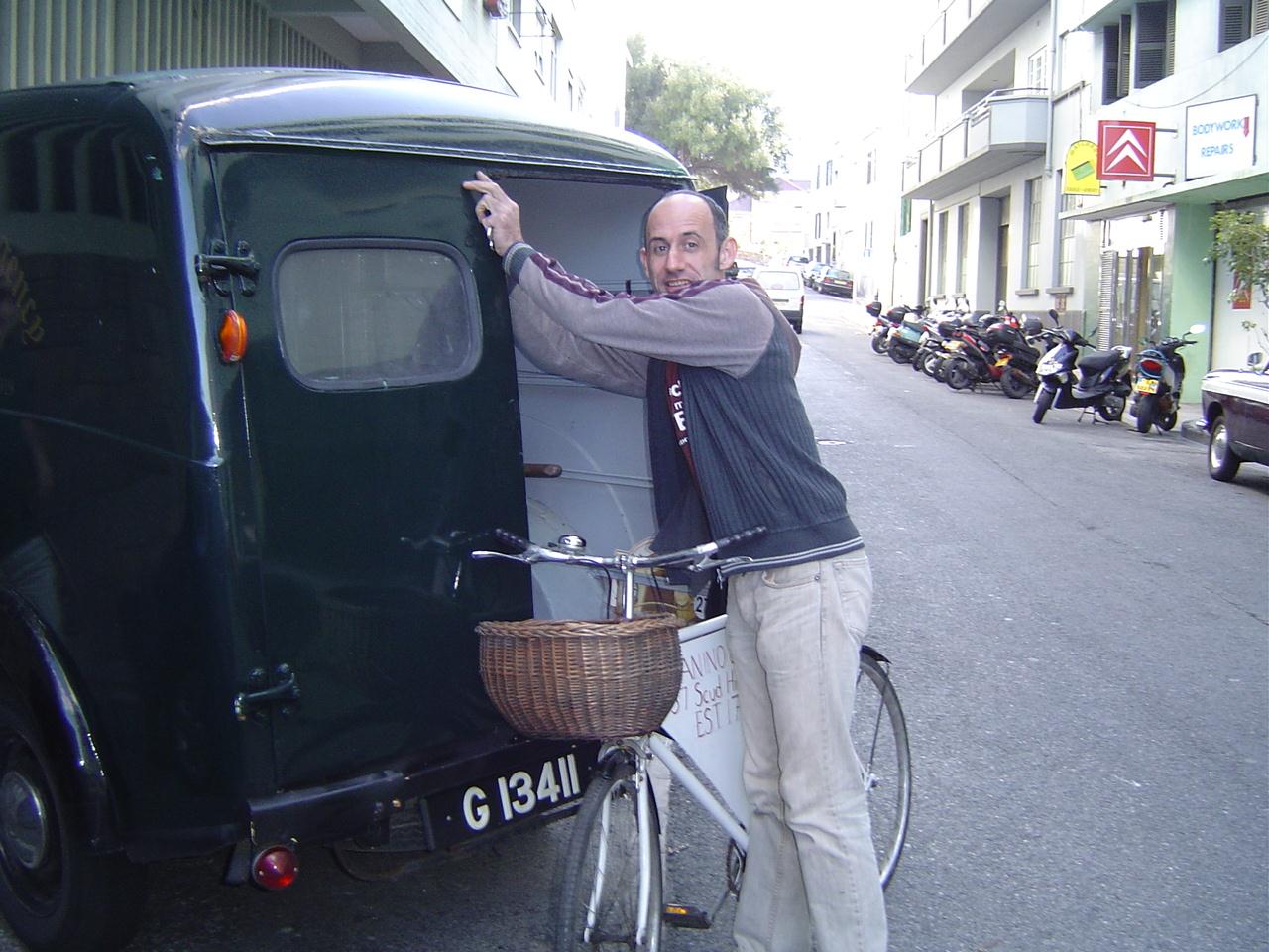 Cavalcade entry 2008 – a Themed entry for a change with the them being Gibraltar of the 1950s with the calentita seller, the governor’s cow, period van and various characters on old bikes from the era.